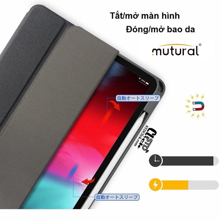 BAO DA IPAD 10.2 2021 - 10.2 2020 - 10.2 2019 MUTURAL CÓ KHE BÚT CHÍNH HÃNG còn hỗ trợ tính năng tự động tắt mở khi đóng mở nắp bao da tiết kiệm pin triệt để và tránh hỏng nút nguồn. Được hoàn thiện tinh xảo trong từng chi tiết.