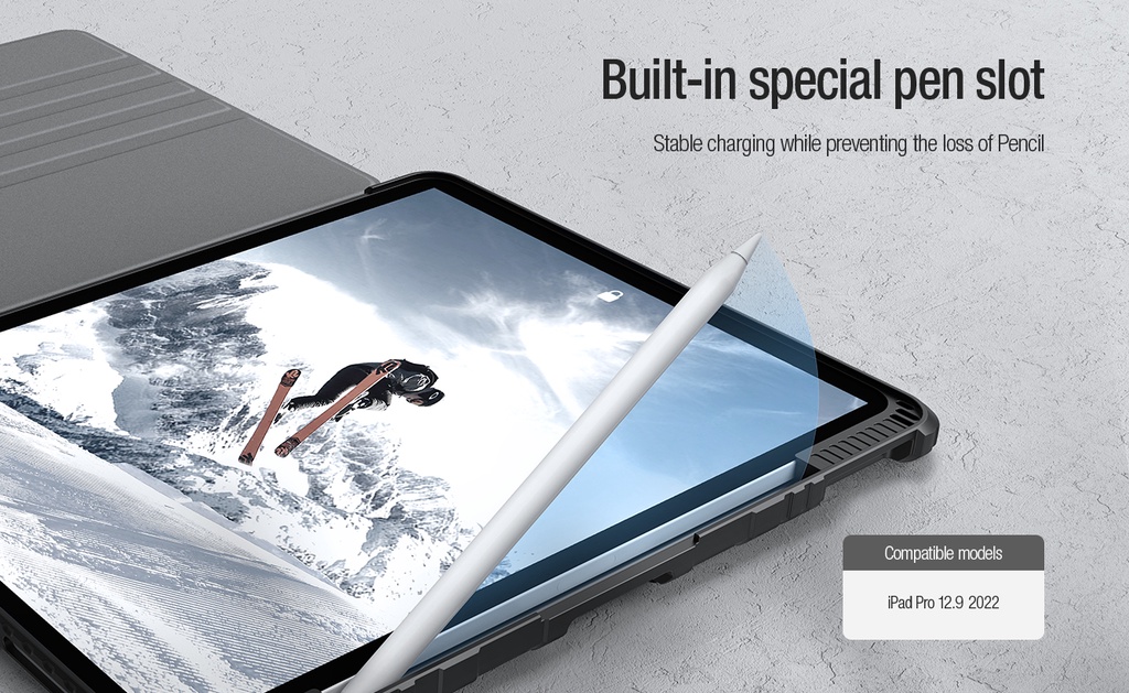 BAO DA IPAD PRO M2 12.9 2022 - M1 12.9 2021 - 12.9 2020 NILLKIN BUMPER SNAPSAFE NAM CHÂM HÍT ĐA NĂNG CHÍNH HÃNG là Bao da dùng chung cho các dòng iPad: