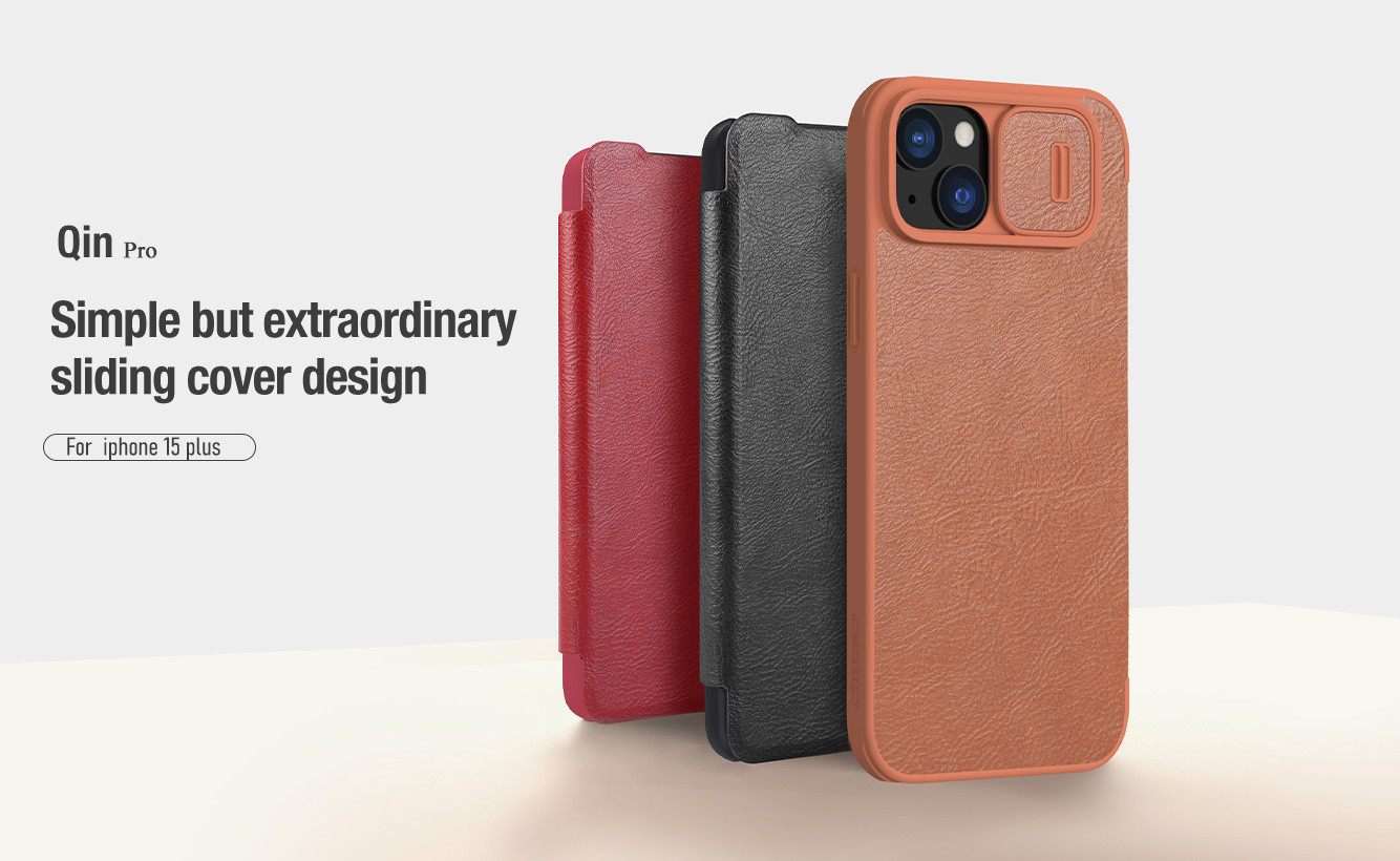 BAO DA IPHONE 15 PLUS - 15 NILLKIN QIN PRO leather BẢO VỆ CAMERA CHÍNH HÃNG