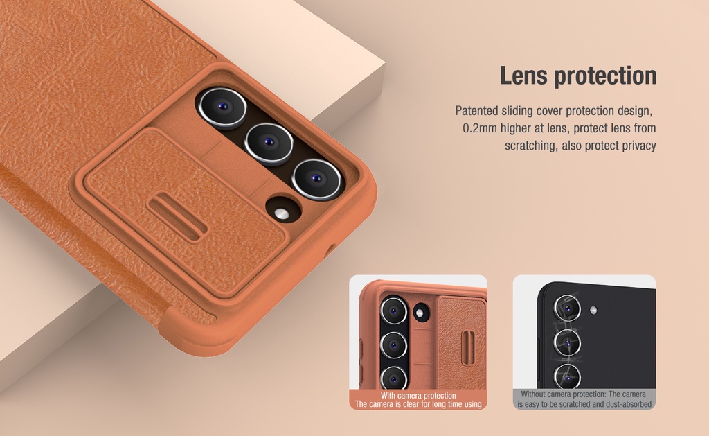 Và tất nhiên, mặt sau của BAO DA SAMSUNG GALAXY S23 PLUS 5G ( S23+ ) NILLKIN QIN PRO BẢO VỆ CAMERA CHÍNH HÃNG được thiết kế cao hơn so với bề mặt camera nên bạn không phải lo lắng camera của bạn bị xước.