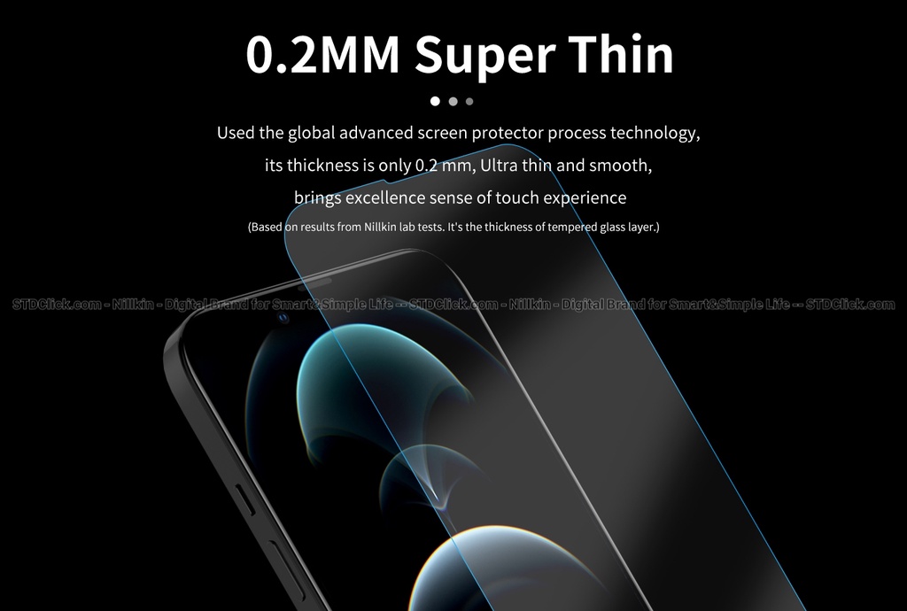 KÍNH CƯỜNG LỰC IPHONE 14 PLUS - 14 NILLKIN H+PRO 0.2mm 2.5D CHÍNH HÃNG Sử dụng công nghệ kính bảo vệ màn hình tiên tiến, độ dày của nó chỉ 0.2 mm với công nghệ cắt CNC chính xác. Bo cong 2.5D thủ công mang lại cảm giác êm ái, trơn tru khi sử dụng, thiết kế mỏng hơn, trong suốt hơn.
