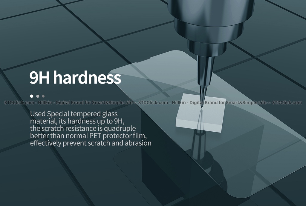 Miếng dán cường lực hiển thị màu sắc ban đầu của màn hình siêu cao, độ cứng của nó lên đến 9H. Bề mặt của nó đã sử dụng lớp phủ dầu mỏng Nanometer chống dấu vân tay, chống bám mồ hôi và có hiệu quả ngăn ngừa và lọc tia cực tím.