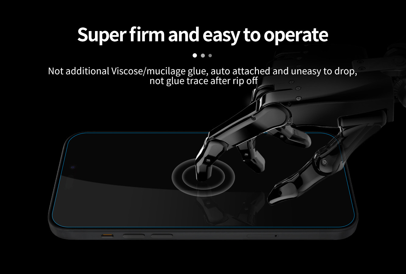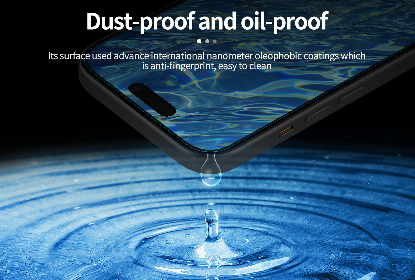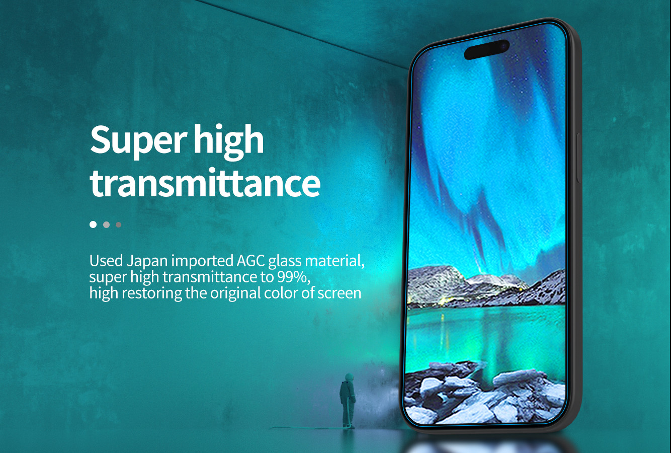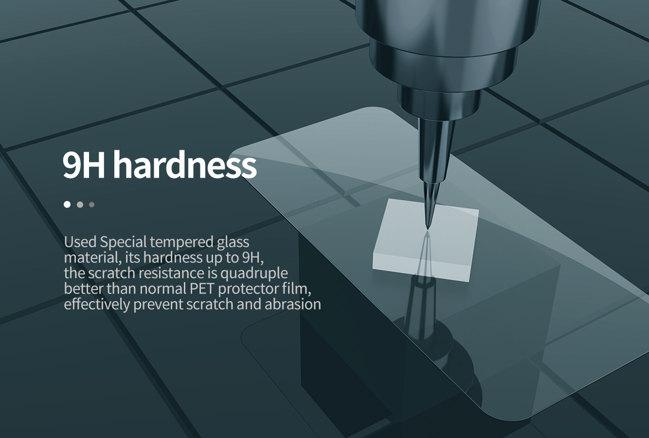Miếng dán cường lực hiển thị màu sắc ban đầu của màn hình siêu cao, độ cứng của nó lên đến 9H. Bề mặt của nó đã sử dụng lớp phủ dầu mỏng Nanometer hạn chế dấu vân tay, chống bám mồ hôi và có hiệu quả ngăn ngừa và lọc tia cực tím.