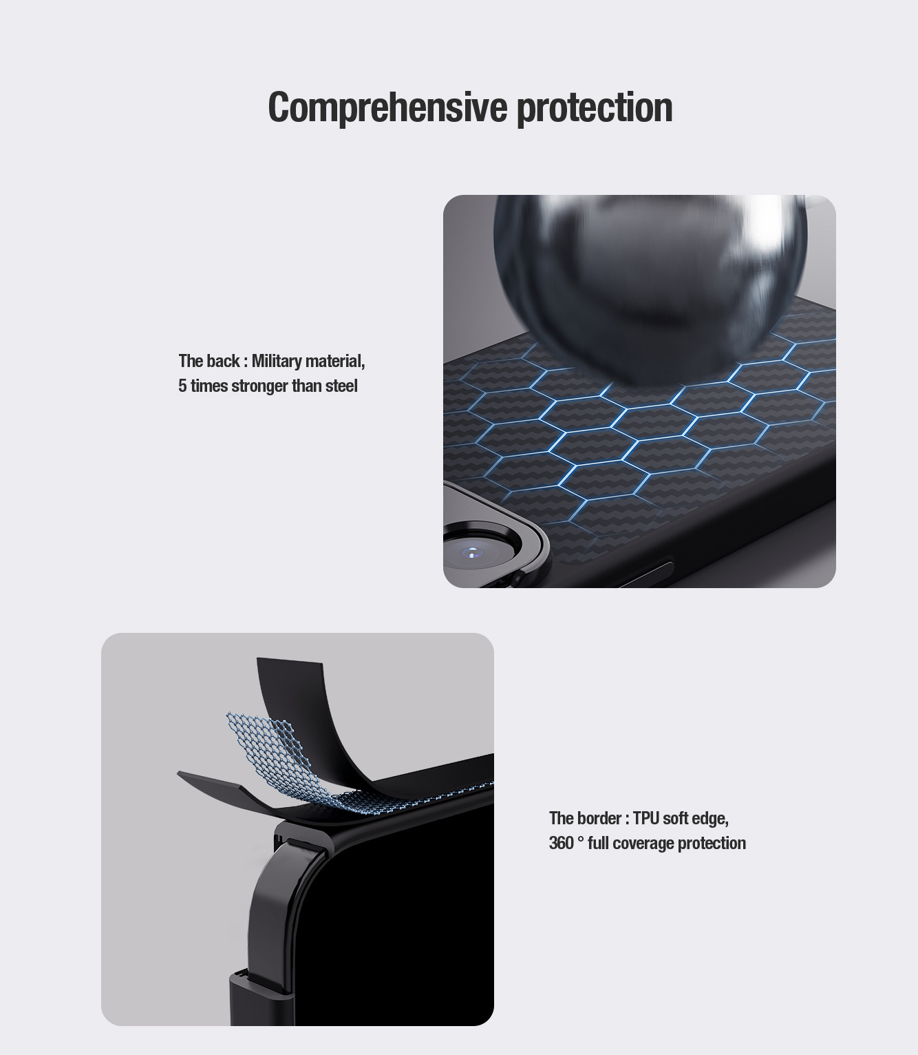 Bằng cách ép xung bằng sợi aramid cho phần mặt lưng và phần viền nhựa dẻo TPU bảo vệ viền máy 360 độ, phần viền cao hơn màn hình 0.5mm, không chỉ bảo vệ màn hình mà còn bảo vệ cả chiếc kính cường lực đi kèm (nếu bạn đã dán màn hình), mang đến cho điện thoại của bạn sự bảo vệ toàn diện.