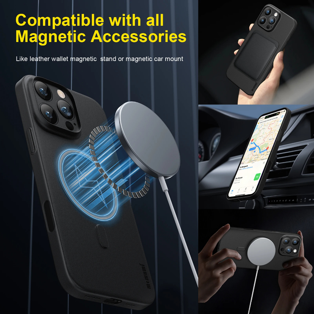 Ốp lưng iPhone 16 Pro Max - 16 Pro và 15 Pro Max MEMUMI Magnetic mỏng lụa 0.3mm - là bản nâng cấp hơn với bản Memumi mỏng lụa 0.3mm thường - ốp được bổ sung thêm vòng nam châm hổ trợ tính năng từ tính, giúp ốp có khả năng hít chặt với sạc không dây từ tính, pin dự phòng từ tính, ví hít lưng từ tính, giá đỡ từ tính...