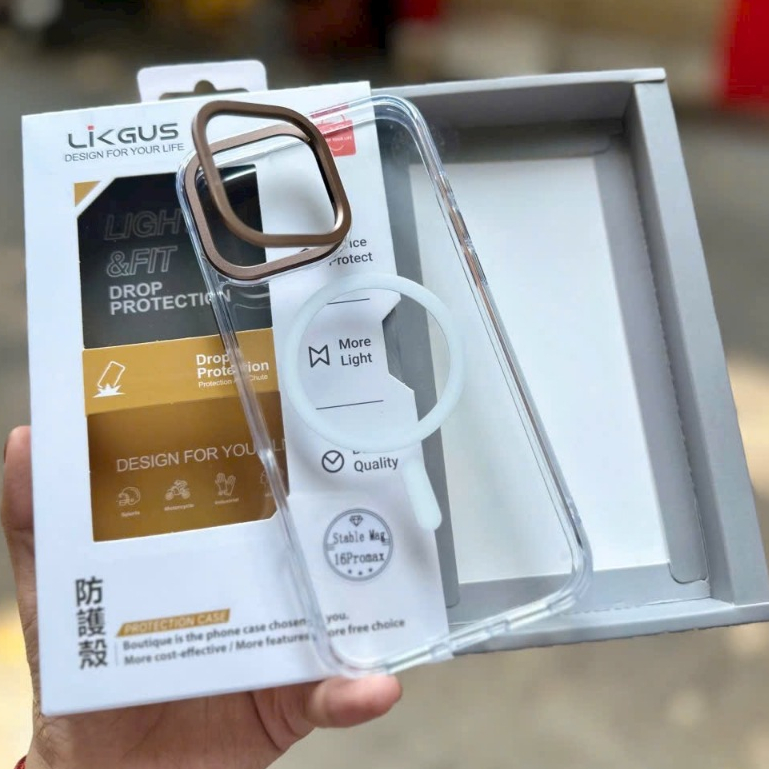 Ốp lưng iPhone 16 Pro Max Likgus Stable Mag - Viền Camera kiêm giá đỡ xếp gọn - có phần viền được làm từ chất liệu TPU chắc chắn, ôm sát các góc cạnh của điện thoại, các phím bấm nhẹ dễ thao tác, ốp lưng chịu va đập cực tốt, các phím bấm thao tác rất êm. Phần mặt lưng là nhựa cứng PC trong suốt, giữ nguyên màu máy, hạn chế trầy xước, hạn chế vân tay