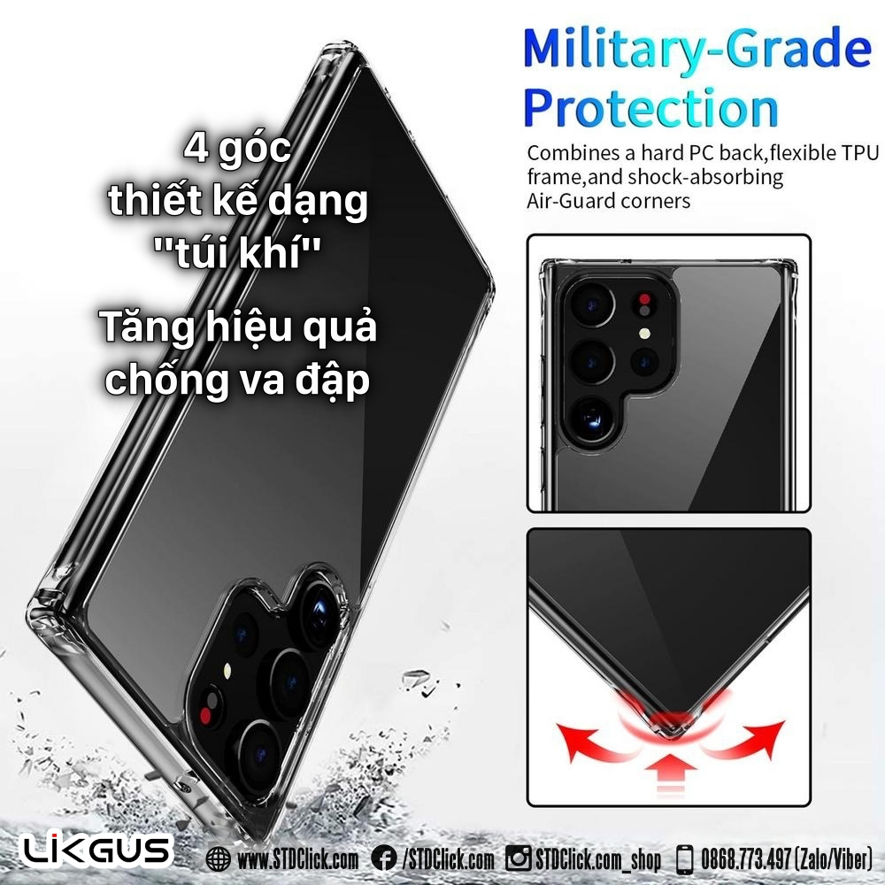 ỐP LƯNG SAMSUNG GALAXY S23 ULTRA - S23 FE - S23 PLUS - S23 LIKGUS LIN CHÍNH HÃNG LƯNG CỨNG TRONG VIỀN SILICON với thiết kế đệm khí thông minh ở các góc cho khả năng chống sốc mạnh mẽ trong một tổng thể gọn gàng, thanh mảnh.