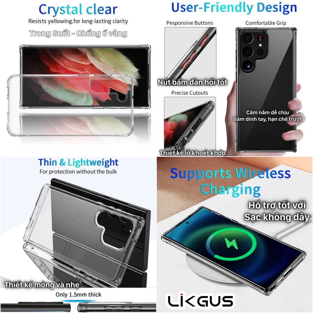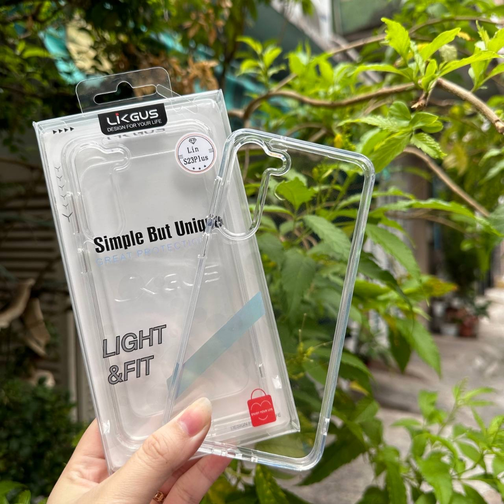 ỐP LƯNG SAMSUNG GALAXY S23 ULTRA - S23 FE - S23 PLUS - S23 LIKGUS LIN CHÍNH HÃNG LƯNG CỨNG TRONG VIỀN SILICON khoe trọn vẻ đẹp nguyên bản đẳng cấp của máy với thiết kế trong suốt đơn giản mà tinh tế. Mặt lưng nhựa cứng chống ố vàng, bai dão kết hợp với viền mềm bằng nhựa TPU cao cấp vừa khít với máy, tháo lắp dễ dàng mà không ọp ẹp.