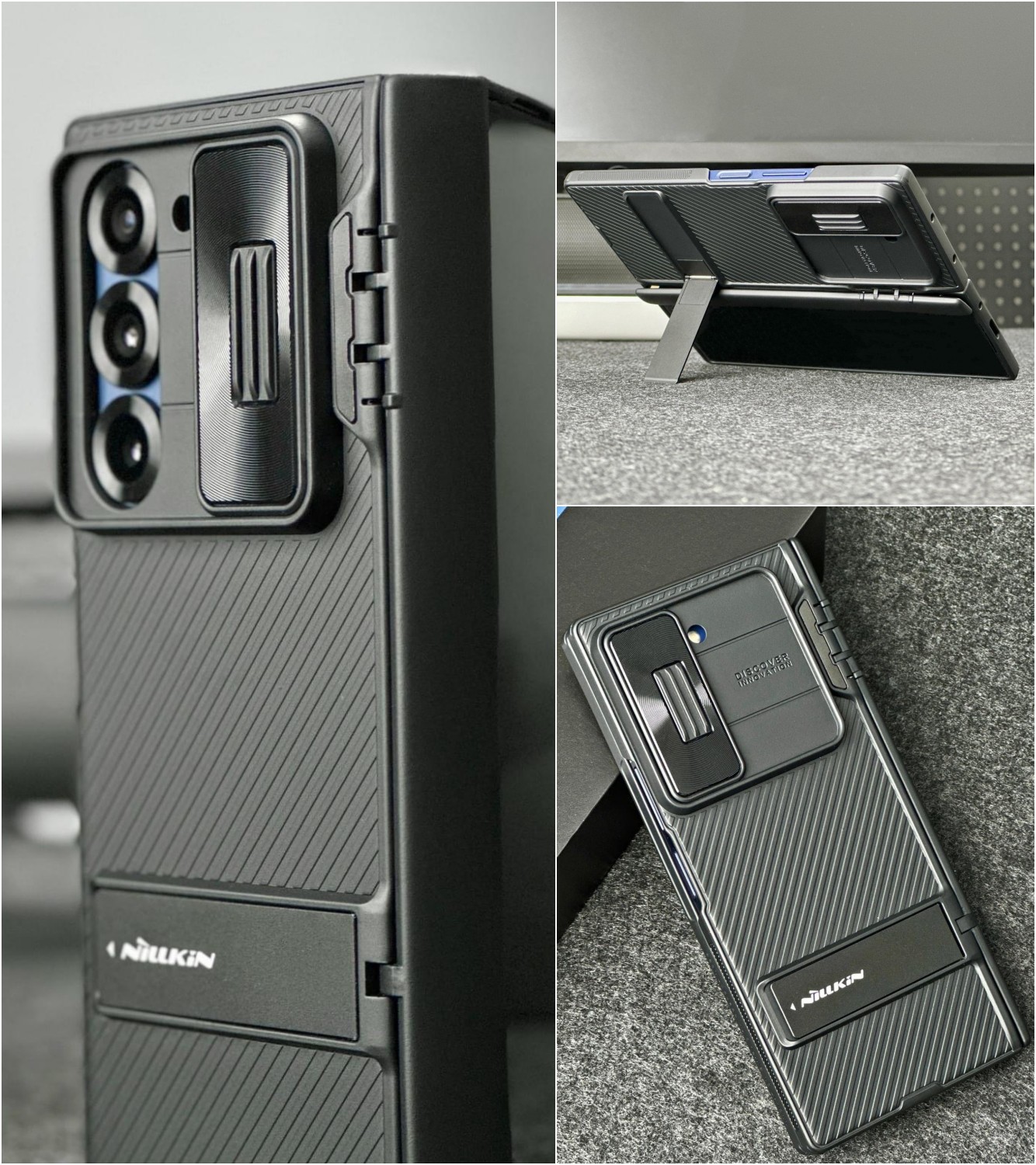 Bề mặt của ốp lưng được xử lý bằng lớp dầu cao su và có kết cấu ba chiều, tạo cảm giác chạm mát lạnh và thoải mái, đồng thời mang lại vẻ ngoài sang trọng và dễ cầm nắm. Với tất cả những tính năng này, ốp lưng Nillkin CamShield Fold không chỉ bảo vệ điện thoại của bạn mà còn nâng cao trải nghiệm sử dụng hàng ngày.